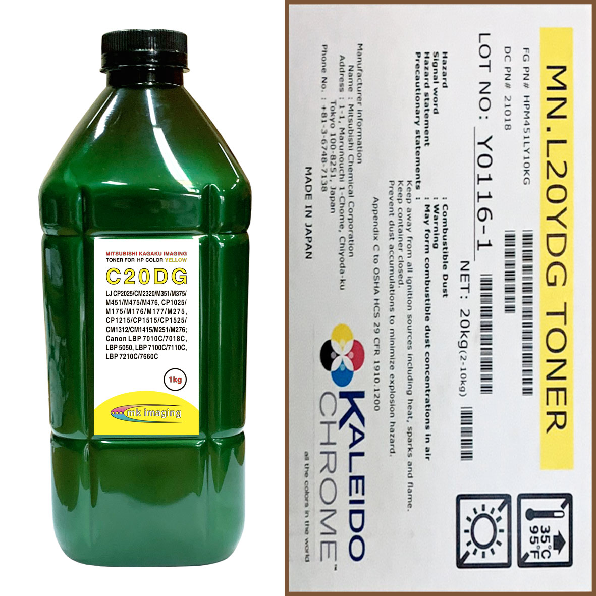 Тонер для HP Color Универсал тип C20DG (фл,1кг,желт,glossy,Chemical MKI) Green Line